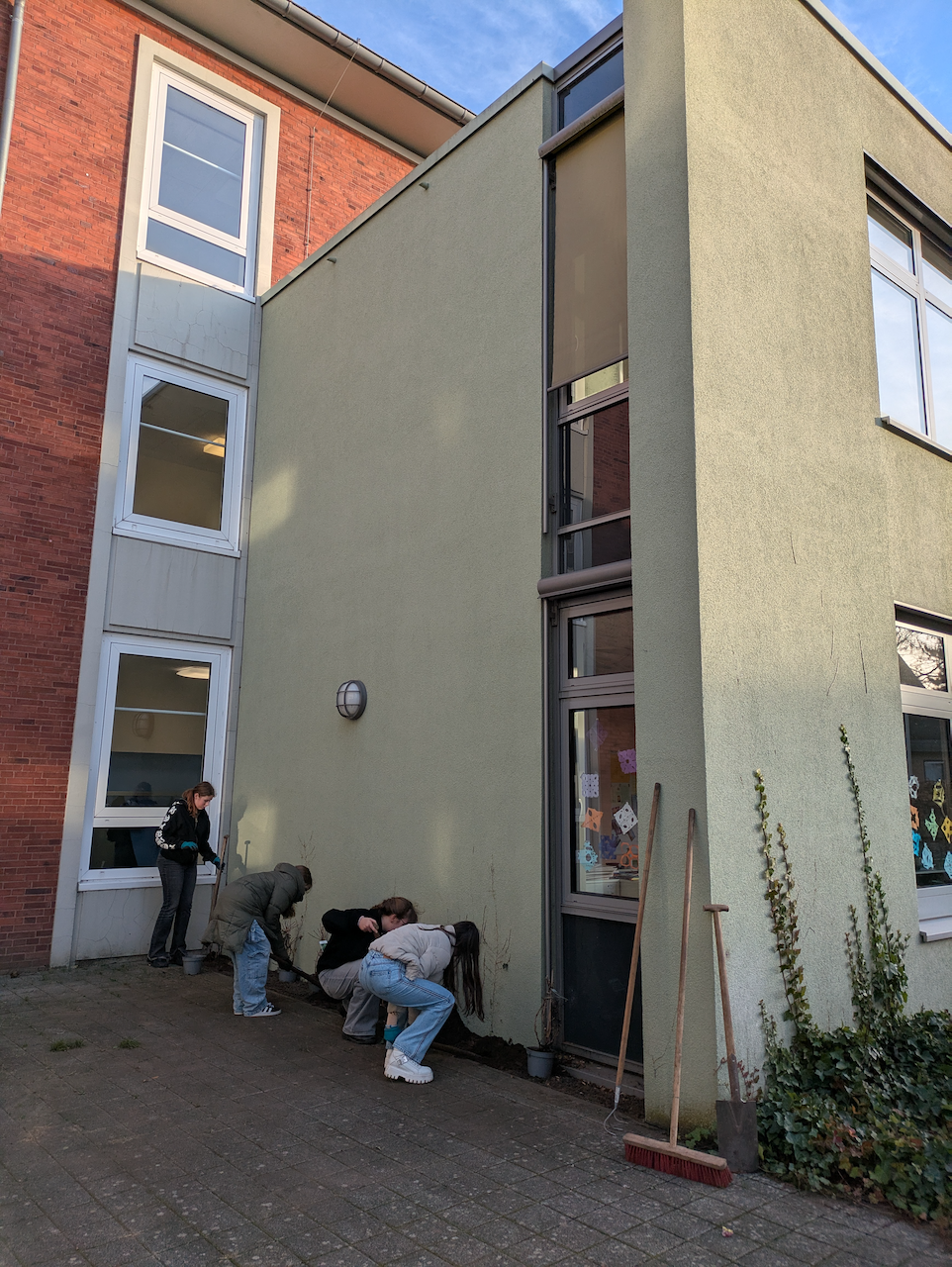 Das Projekt „Fassadenbegrünung" wurde bereits zu Beginn des Jahres 2025 durch die Schülerin Hüma Dursun angeregt und dann durch die damalige Schülersprecherin des Gymnasiums Martinum Gesa Marwede weiter vorangetrieben. Um die Kosten für die Bepflanzung zu decken, wurde Anfang April ein Förderantrag beim Programm "Umweltschecks "Naturschutz" NordrheinWestfalen 2025" gestellt und bewilligt. Kurz vor den Weihnachtsferien wurde nun das Projekt zum Abschluss gebracht. Das Projekt stellt einen Beitrag des im Schulprogramm des Martinums verankerten Leitprinzips „Verantwortung für die Natur übernehmen" dar.