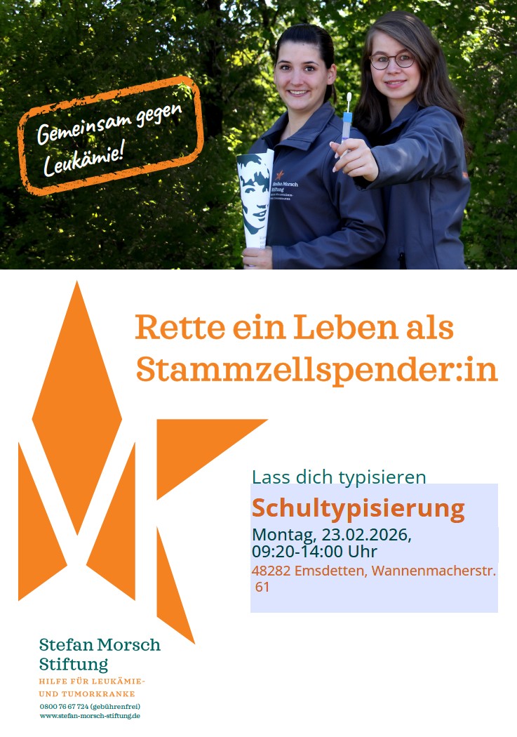 Am 23. Februar 2026 findet am Martinum erneut eine Typisierungsaktion in Kooperation mit der Stefan-Morsch-Stiftung statt.