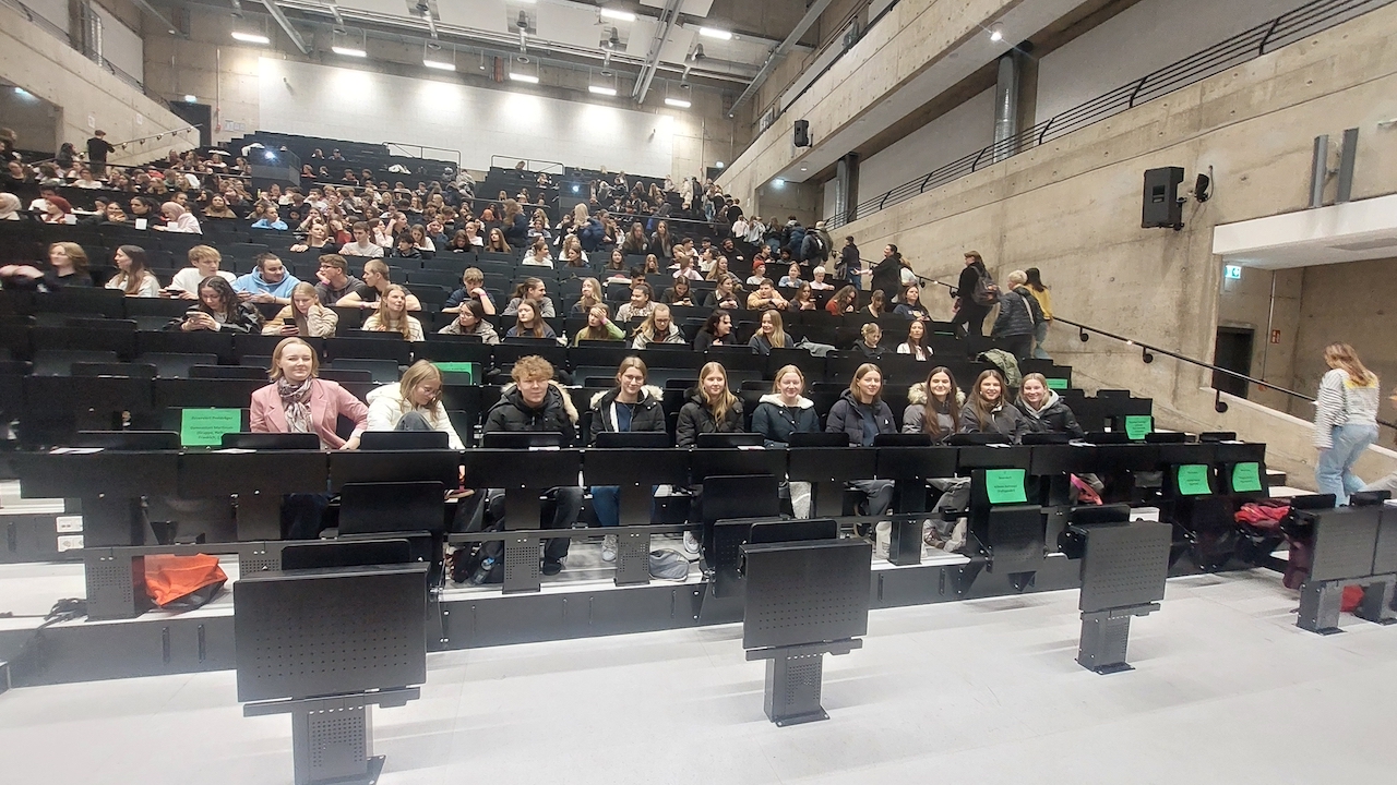 Die Veranstaltung am 20.02. gestaltete sich so, dass am Vormittag wissenschaftliche Beiträge zur zentralen Fragestellung gehalten wurden, die sich immer wieder auf Beispiele der über 130 eingereichten Beiträge bezogen. So wurde unser Beitrag z.B. von Prof. Hurrelmann abschließend als ein sehr gutes Beispiel herangezogen, das alle zuvor thematisierten Fachbeiträge überzeugend zusammenfasse; hierzu kam er im mit 1100 Gästen gefüllten Audimax extra zu uns, um uns den Anwesenden zu präsentieren.