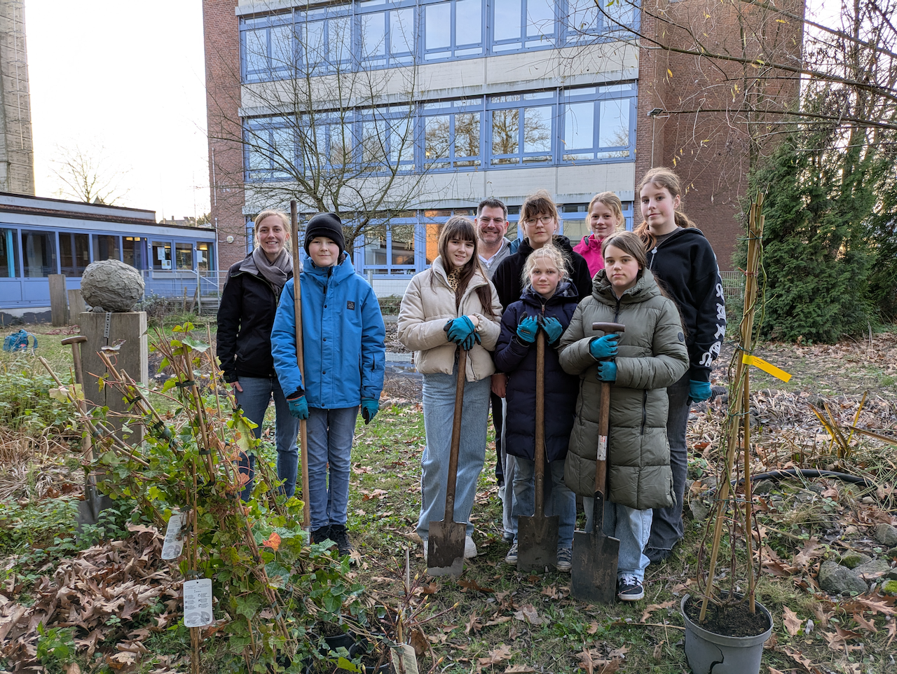 Das Projekt „Fassadenbegrünung" wurde bereits zu Beginn des Jahres 2025 durch die Schülerin Hüma Dursun angeregt und dann durch die damalige Schülersprecherin des Gymnasiums Martinum Gesa Marwede weiter vorangetrieben. Um die Kosten für die Bepflanzung zu decken, wurde Anfang April ein Förderantrag beim Programm "Umweltschecks "Naturschutz" NordrheinWestfalen 2025" gestellt und bewilligt. Kurz vor den Weihnachtsferien wurde nun das Projekt zum Abschluss gebracht. Das Projekt stellt einen Beitrag des im Schulprogramm des Martinums verankerten Leitprinzips „Verantwortung für die Natur übernehmen" dar.