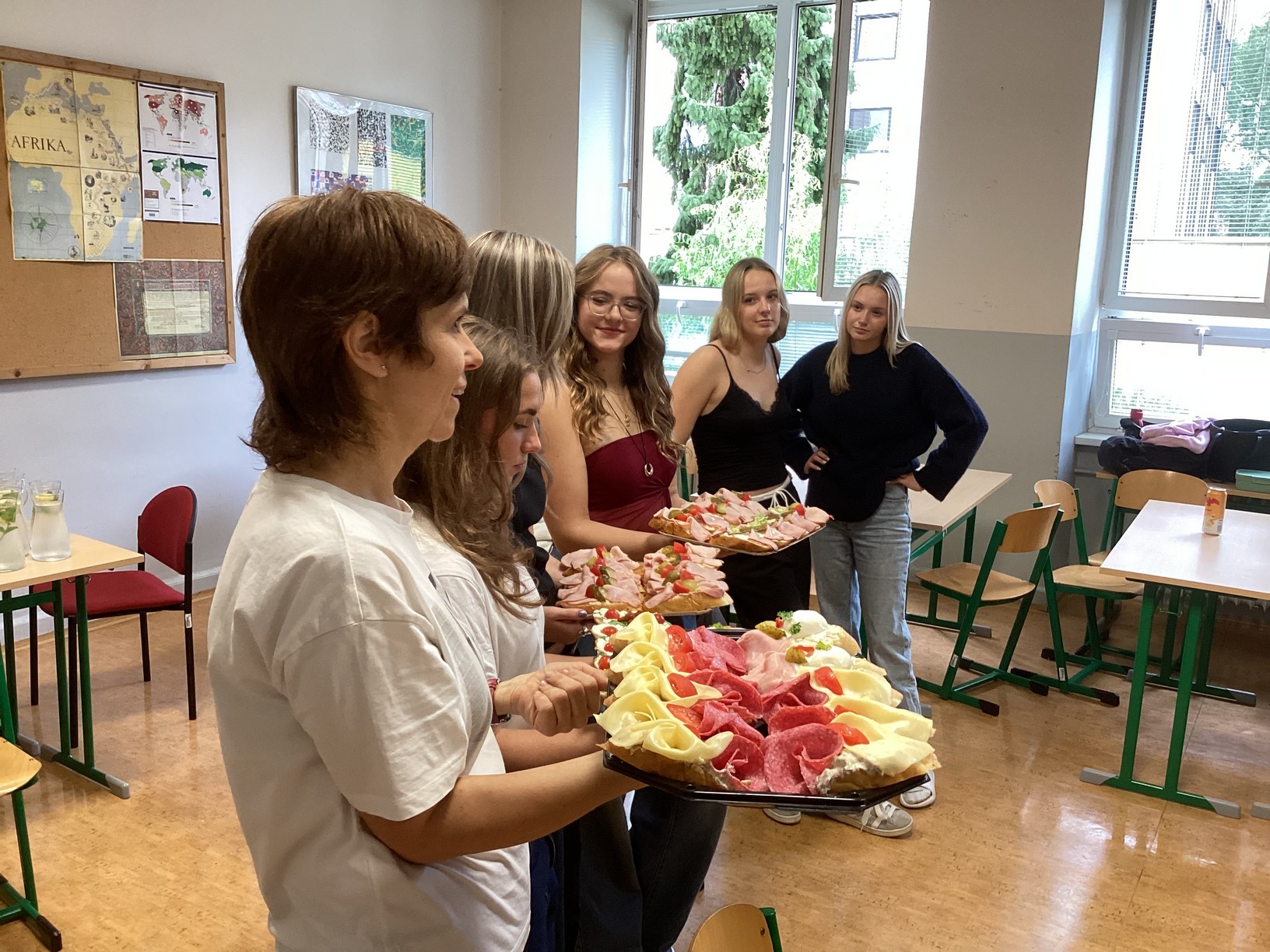 Neben ihrer Schule haben wir auch eine typisch tschechische Spezialität kennengelernt und probiert. Diese Häppchen (belegte Brötchen bzw. große Baguettescheiben) sind wirklich lecker!