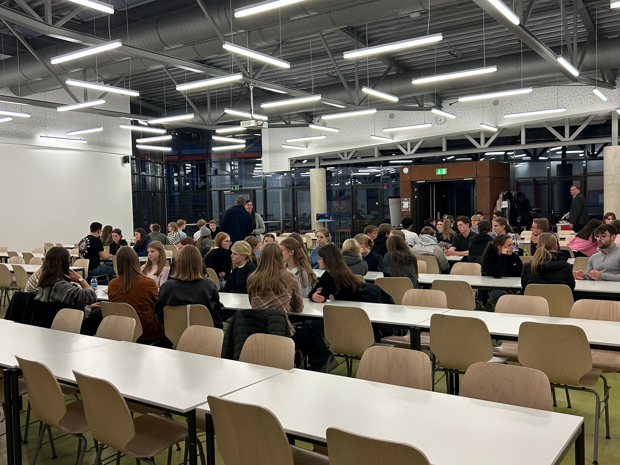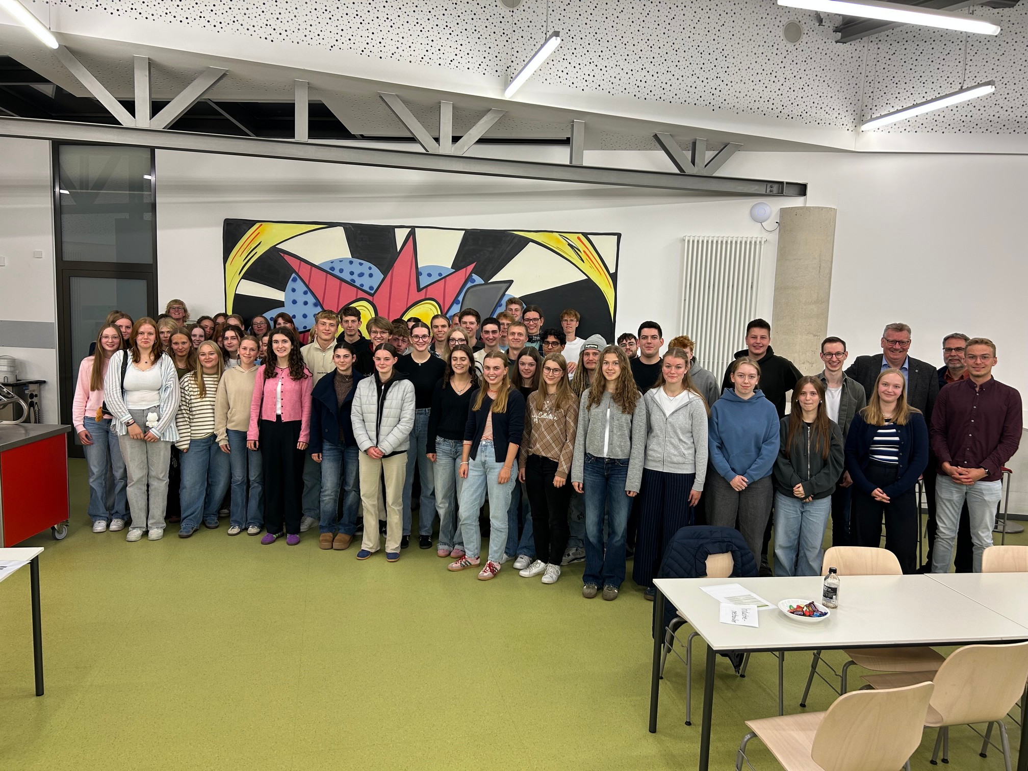 Das Prinzip ähnelt einem „Berufs-Speeddating“: In kleinen Gesprächsrunden konnten sich die Jugendlichen gezielt informieren, persönliche Fragen stellen und von den Erfahrungen der Ehemaligen profitieren. Gerade die geringe Altersdifferenz sorgte für eine offene, lockere Atmosphäre. Eine Schülerin aus der EF lobte vor allem die Nähe zu den Gesprächspartnern: „Es ist etwas ganz anderes, wenn jemand erzählt, den man aus der Schule kennt – viel authentischer als eine Info aus dem Internet.“